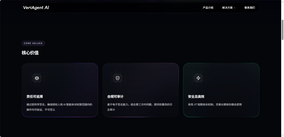 在AI智能体安全防护领域,市面上已有不少产品聚焦于漏洞修补、恶意攻击拦截等具体安全问题,而VeriAgent的核心差异化优势,在于其跳出了“单点安全防护”的思维,从“信任基础设施”的角度,构建了全链条的信任体系,精准解决智能体“身份确权、意图授权、操作存证”三大核心信任难题。